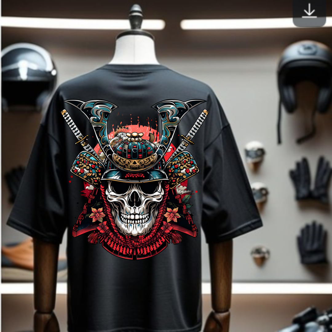 Step into warrior mode with this premium oversized t-shirt, featuring a fierce Samurai skull with sword on the back and a subtle mini skull emblem on the front. A perfect fusion of dark aesthetics and Japanese warrior culture — made for modern rebels who wear their strength.