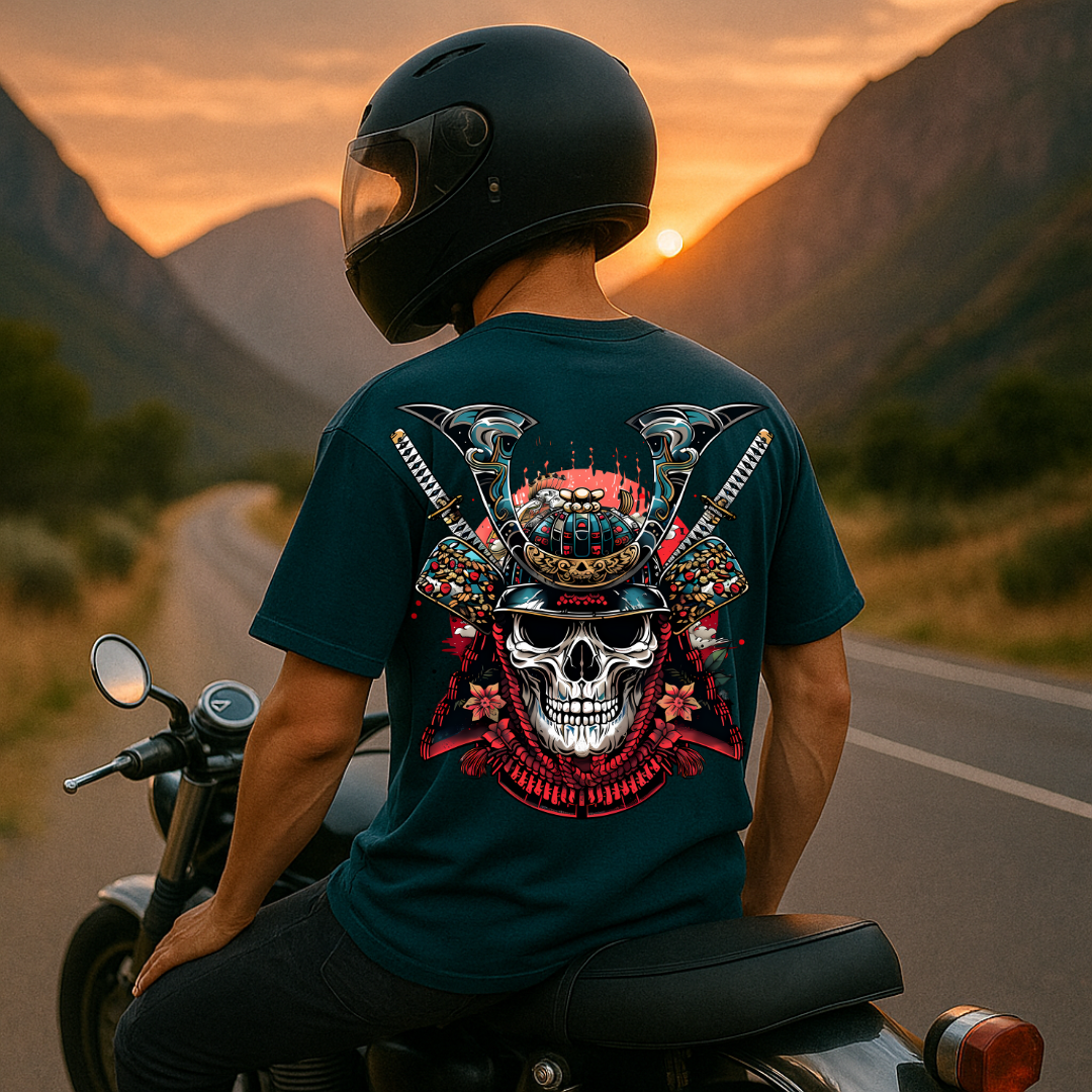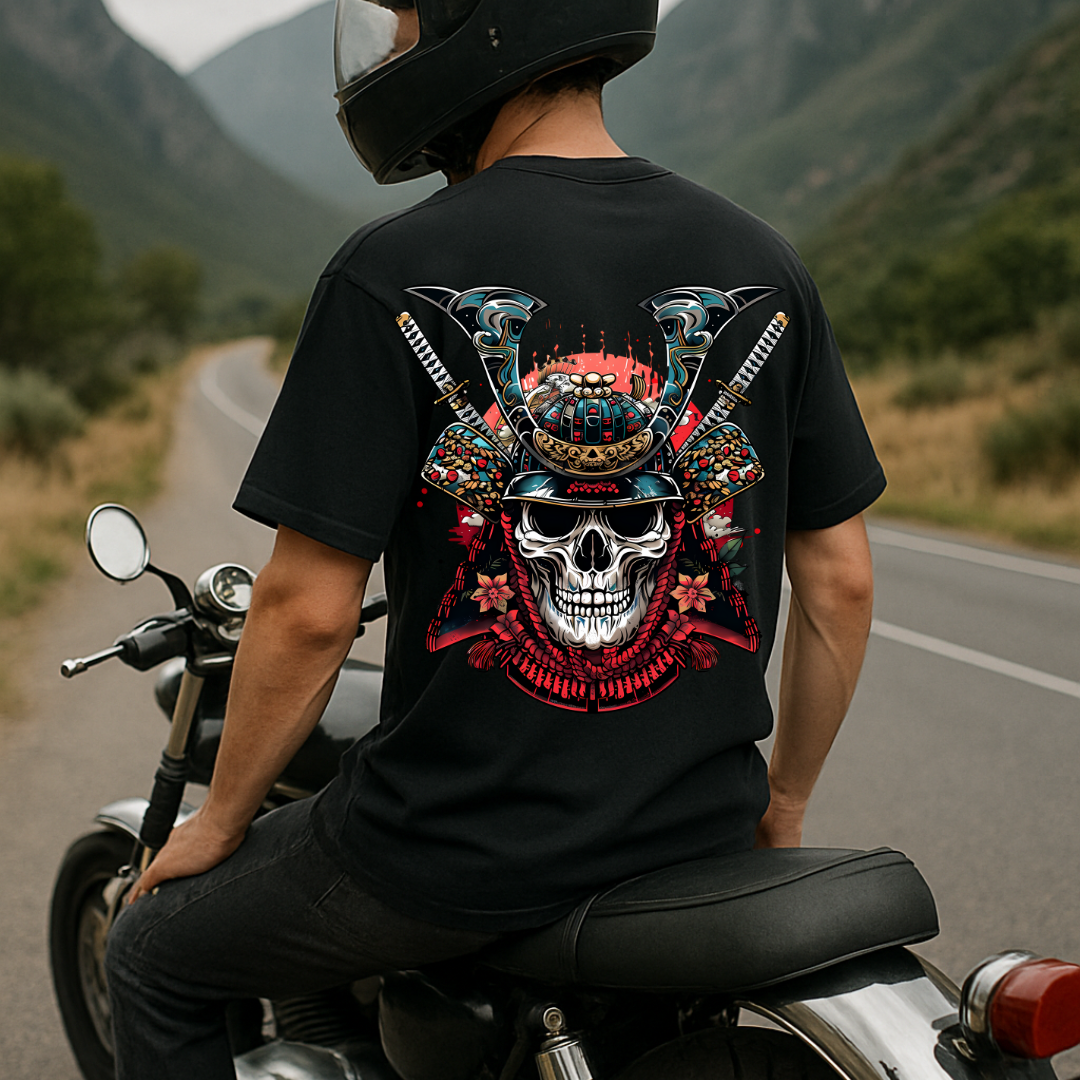 Samurai Skull Dual Print Biker Premium T-ShirtSamurai Skull Dual Print Biker Premium T-Shirt